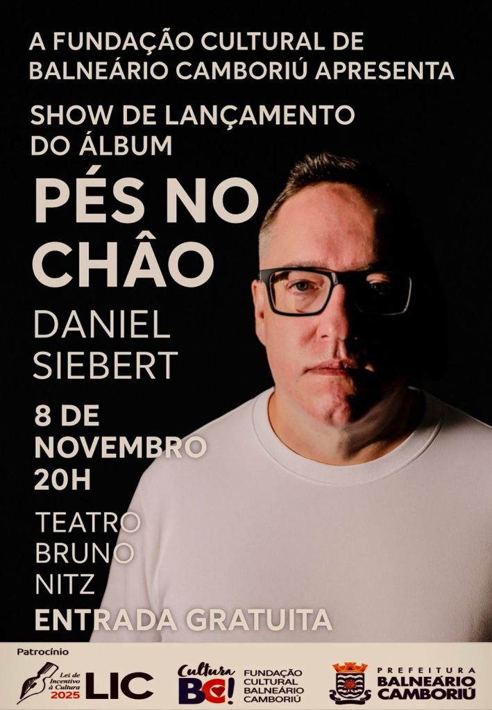 O músico Daniel Siebert irá lançar o novo álbum, “Pés no Chão” com show gratuito em Balneário Camboriú. Confira uma prévia deste novo disco no vídeo divulgado pelo músico.